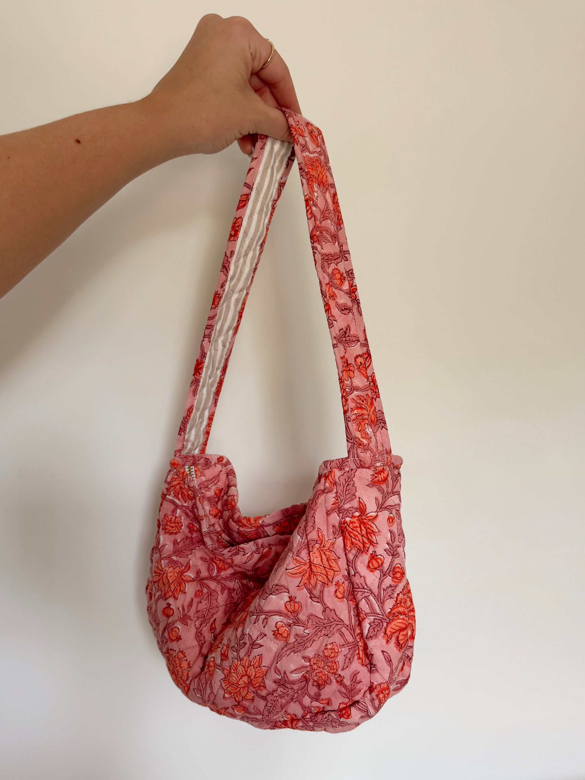 Small quilted shoulder bag. Made from an ultra soft, 100% cotton fabric.